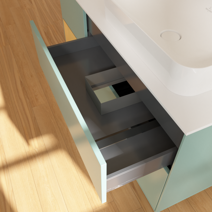 Практичные внутренние перегородки. Продуманные внутренние перегородки в мебели для ванной комнаты Villeroy & Boch позволяют индивидуально поддерживать порядок в ванной комнате. Различные элементы, такие как регулируемые стеклянные перегородки и ящики для аксессуаров различных размеров, обеспечивают порядок и хороший обзор. Благодаря практичным внутренним перегородкам вы сможете с первого взгляда найти часто используемые аксессуары для ванной комнаты.