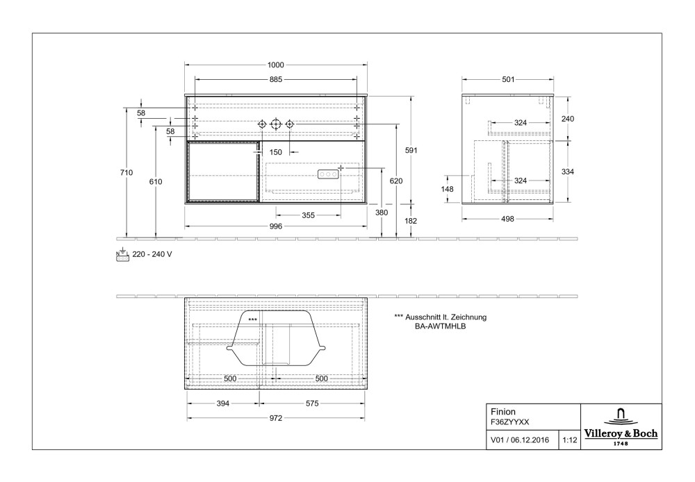 Тумба под раковину Villeroy & Boch Finion 100х50,1 см с подсветкой МДФ белый матовый лак/стекло белое матовое F361HGMT