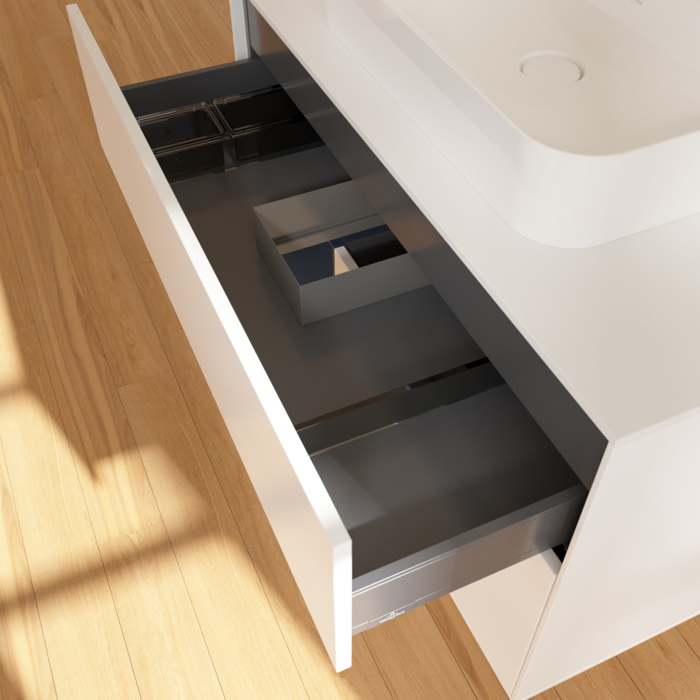 Практичные внутренние перегородки. Продуманные внутренние перегородки в мебели для ванной комнаты Villeroy & Boch позволяют индивидуально поддерживать порядок в ванной комнате. Различные элементы, такие как регулируемые стеклянные перегородки и ящики для аксессуаров различных размеров, обеспечивают порядок и хороший обзор. Благодаря практичным внутренним перегородкам вы сможете с первого взгляда найти часто используемые аксессуары для ванной комнаты.