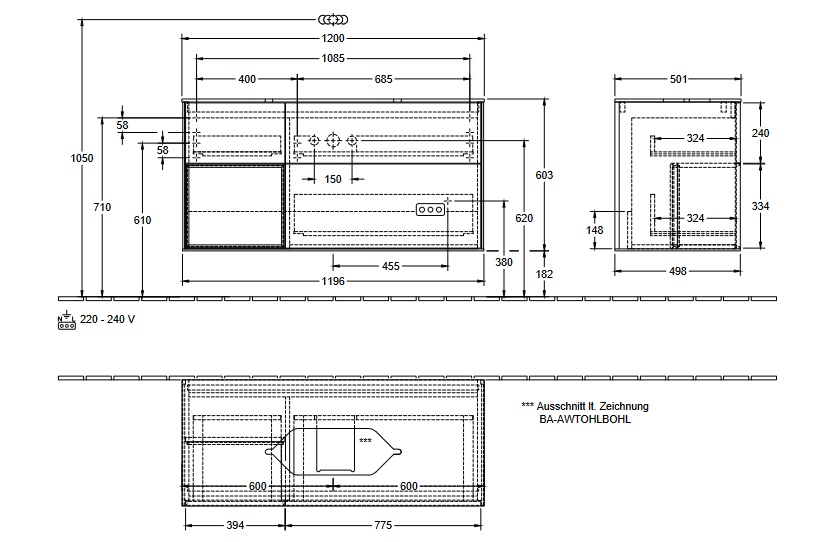 с подсветкой полки и настенным освещением, ящики с функцией SoftClosing, с функцией Push-to-open, без отверстий под смеситель