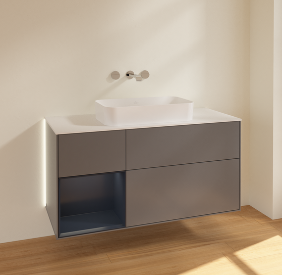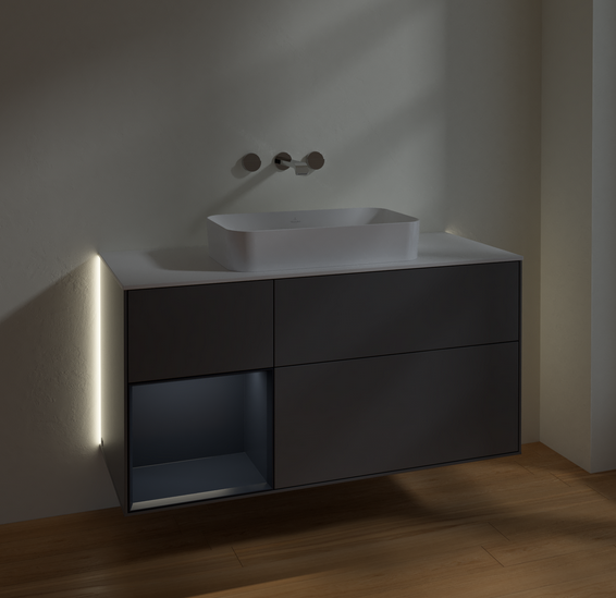 Тумба под раковину Villeroy & Boch Finion 120х50,1 см с подсветкой МДФ антрацит матовый лак/стекло белое матовое G701HGGK