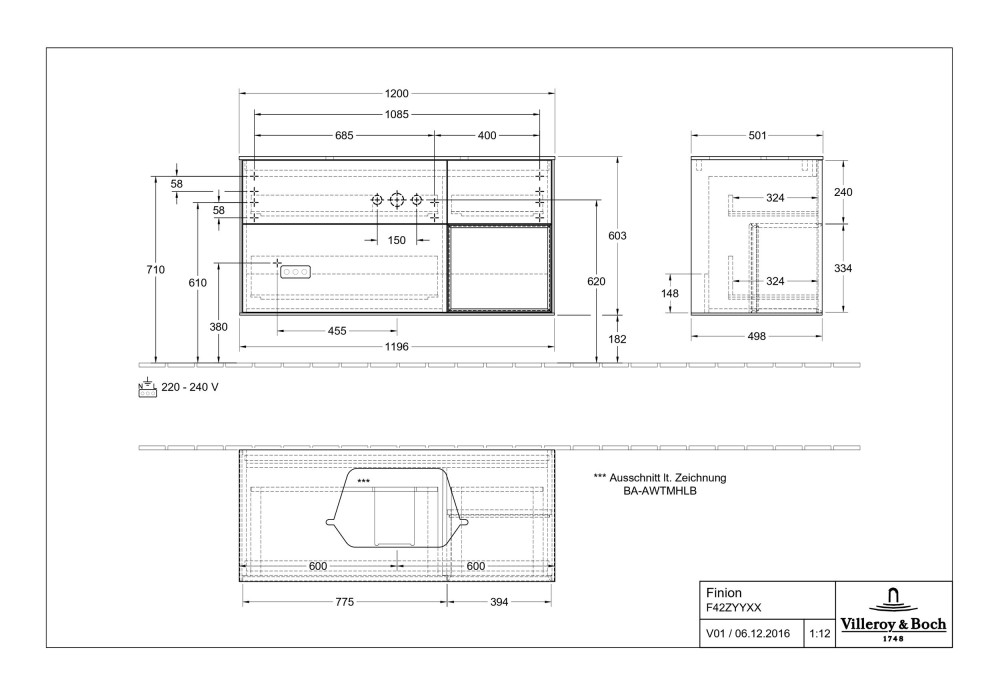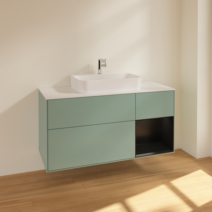 Тумба под раковину Villeroy & Boch Finion 120х50,1 см с подсветкой МДФ оливковый матовый лак/стекло белое матовое F421PDGM