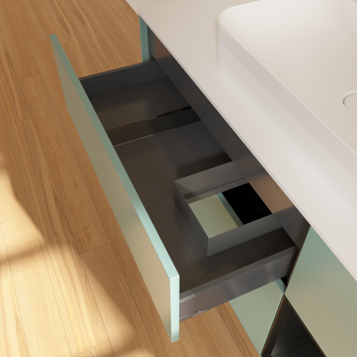 Практичные внутренние перегородки. Продуманные внутренние перегородки в мебели для ванной комнаты Villeroy & Boch позволяют индивидуально поддерживать порядок в ванной комнате. Различные элементы, такие как регулируемые стеклянные перегородки и ящики для аксессуаров различных размеров, обеспечивают порядок и хороший обзор. Благодаря практичным внутренним перегородкам вы сможете с первого взгляда найти часто используемые аксессуары для ванной комнаты.