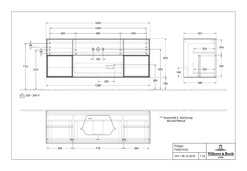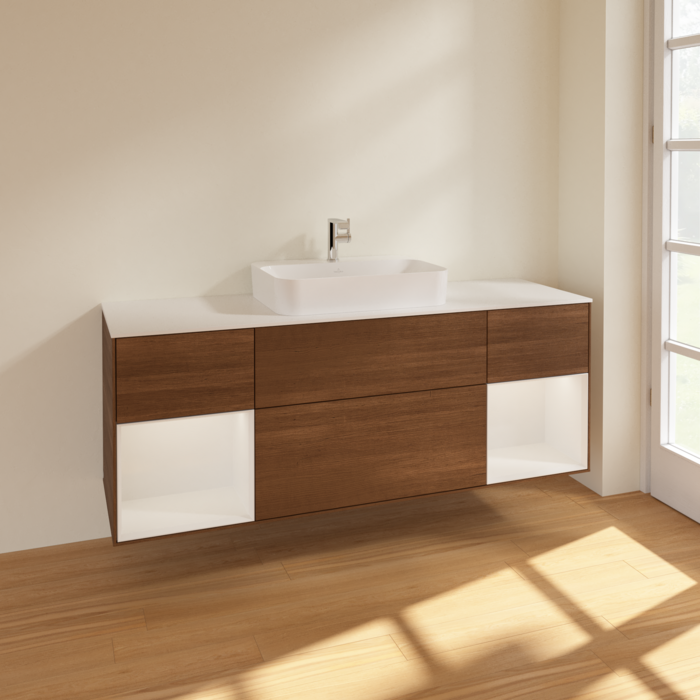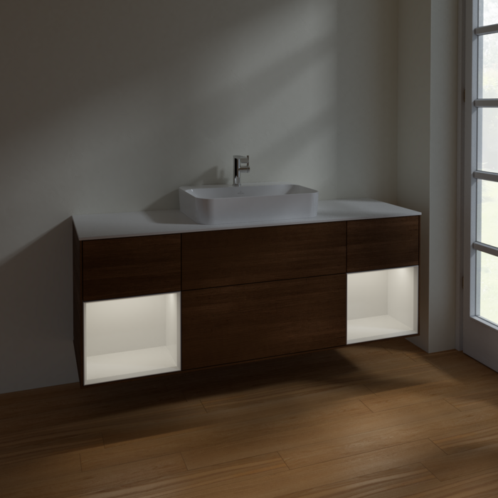 Тумба под раковину Villeroy & Boch Finion 160х50,1 см с подсветкой МДФ шпон грецкого ореха/стекло белое матовое F451GFGN