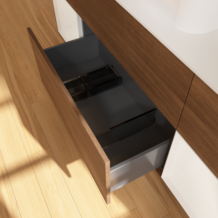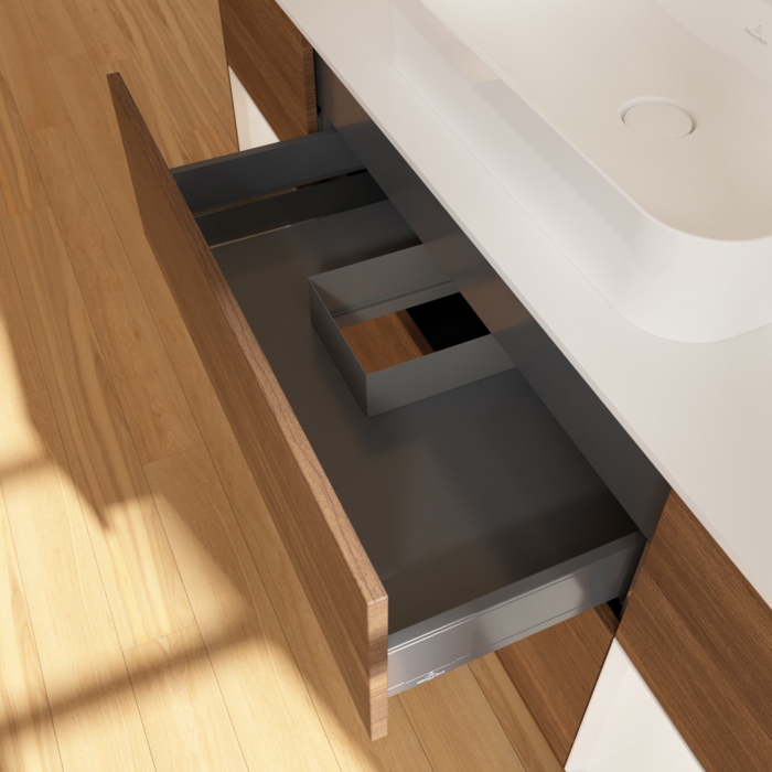 Практичные внутренние перегородки. Продуманные внутренние перегородки в мебели для ванной комнаты Villeroy & Boch позволяют индивидуально поддерживать порядок в ванной комнате. Различные элементы, такие как регулируемые стеклянные перегородки и ящики для аксессуаров различных размеров, обеспечивают порядок и хороший обзор. Благодаря практичным внутренним перегородкам вы сможете с первого взгляда найти часто используемые аксессуары для ванной комнаты.