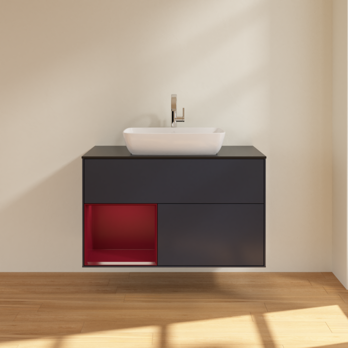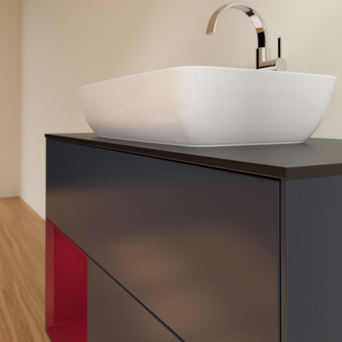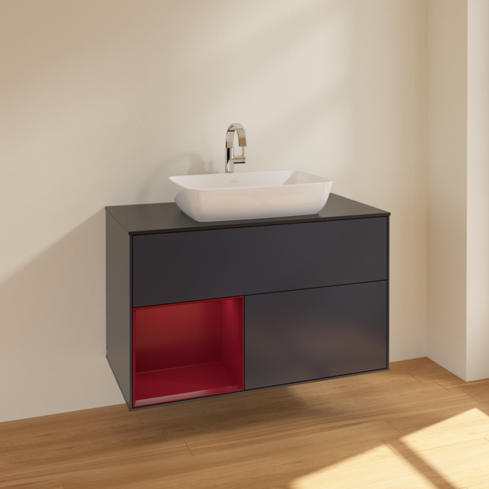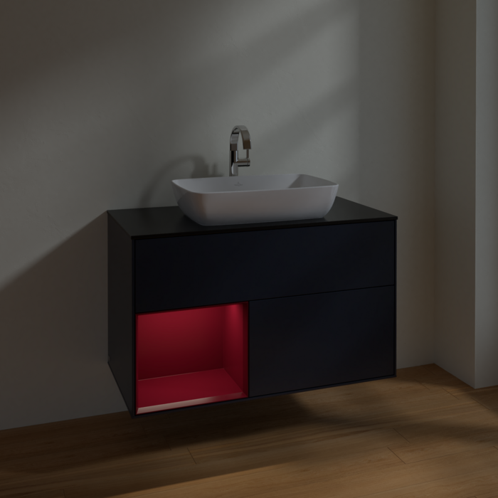 Тумба под раковину Villeroy & Boch Finion 100х50,1 см с подсветкой МДФ темно-синий матовый лак/стекло черное матовое F772HBHG