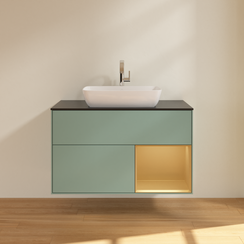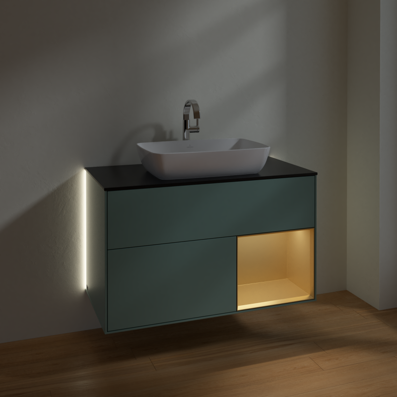 Тумба под раковину Villeroy & Boch Finion 100х50,1 см с подсветкой МДФ оливковый матовый лак/стекло черное матовое G782HFGM