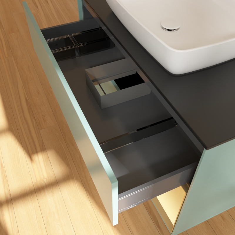 Практичные внутренние перегородки. Продуманные внутренние перегородки в мебели для ванной комнаты Villeroy & Boch позволяют индивидуально поддерживать порядок в ванной комнате. Различные элементы, такие как регулируемые стеклянные перегородки и ящики для аксессуаров различных размеров, обеспечивают порядок и хороший обзор. Благодаря практичным внутренним перегородкам вы сможете с первого взгляда найти часто используемые аксессуары для ванной комнаты.