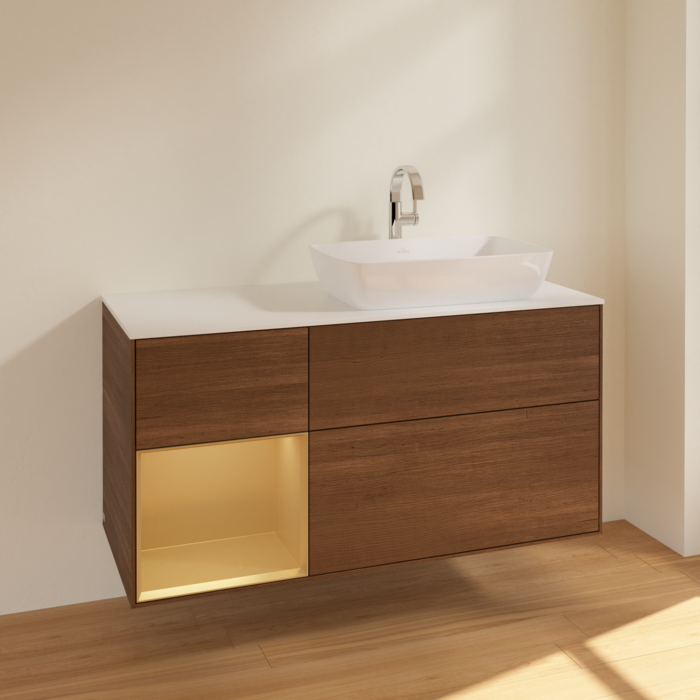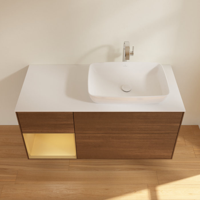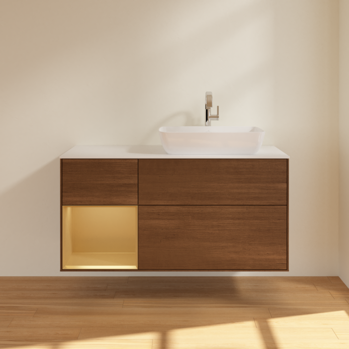 Тумба под раковину Villeroy & Boch Finion 120х50,1 см с подсветкой МДФ шпон грецкого ореха/стекло белое матовое F801HFGN