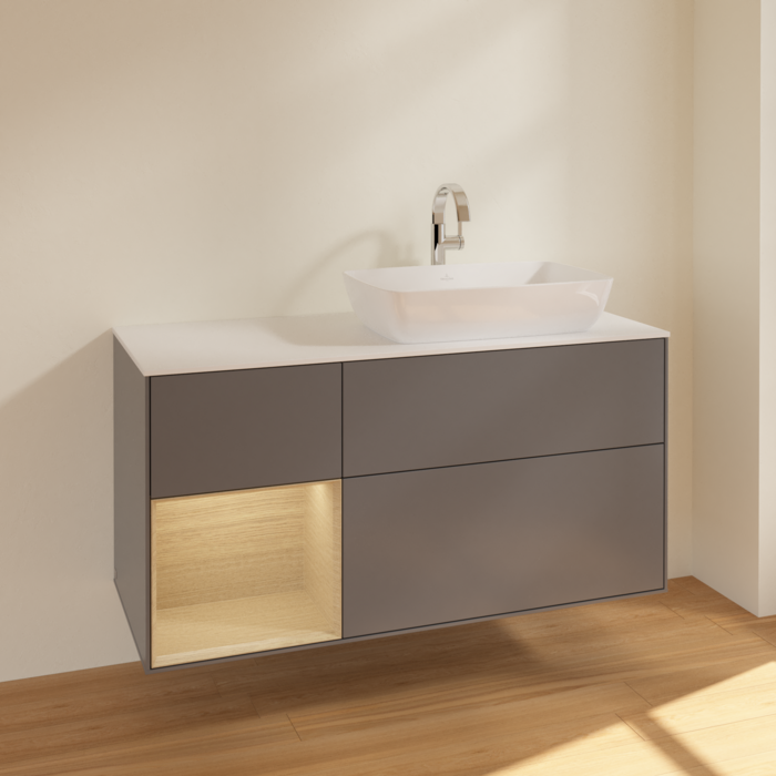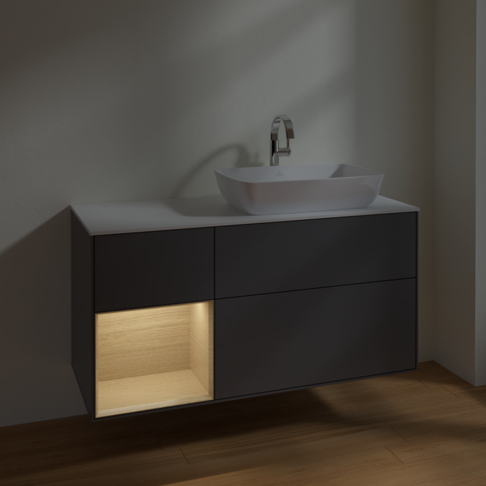 Тумба под раковину Villeroy & Boch Finion 120х50,1 см с подсветкой МДФ антрацит матовый лак/стекло белое матовое F801PCGK