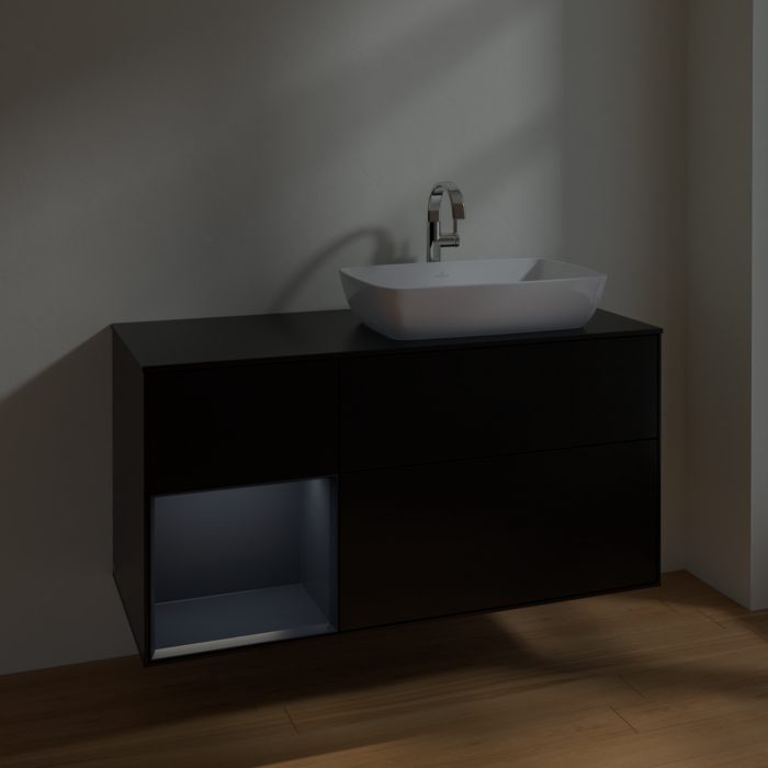 Тумба под раковину Villeroy & Boch Finion 120х50,1 см с подсветкой МДФ черный матовый лак/стекло черное матовое F802HGPD