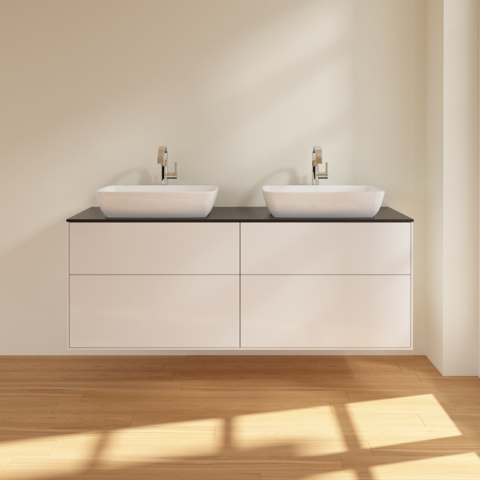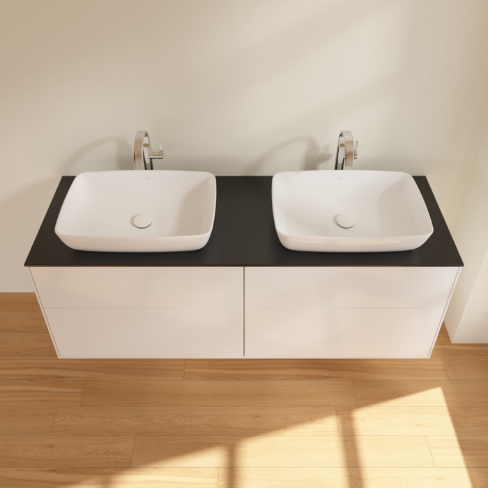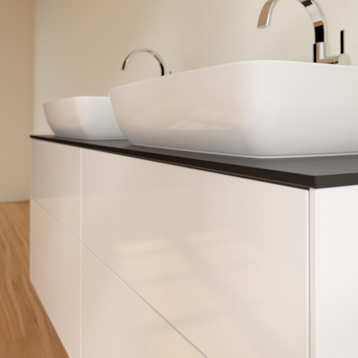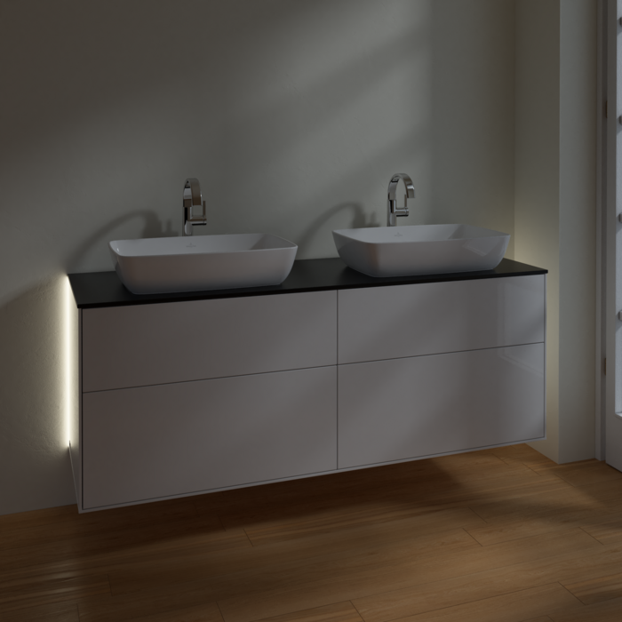 Тумба под раковину Villeroy & Boch Finion 160х50,1 см с подсветкой МДФ глянцевый белый лак/стекло черное матовое G84200GF