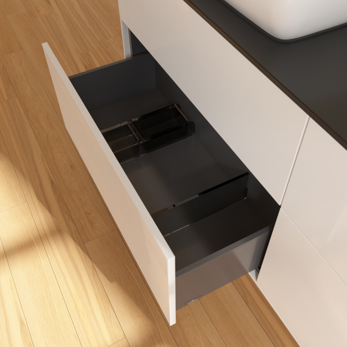 Практичные внутренние перегородки. Продуманные внутренние перегородки в мебели для ванной комнаты Villeroy & Boch позволяют индивидуально поддерживать порядок в ванной комнате. Различные элементы, такие как регулируемые стеклянные перегородки и ящики для аксессуаров различных размеров, обеспечивают порядок и хороший обзор. Благодаря практичным внутренним перегородкам вы сможете с первого взгляда найти часто используемые аксессуары для ванной комнаты.