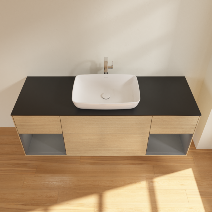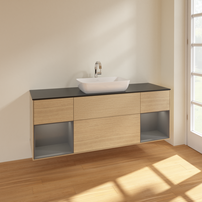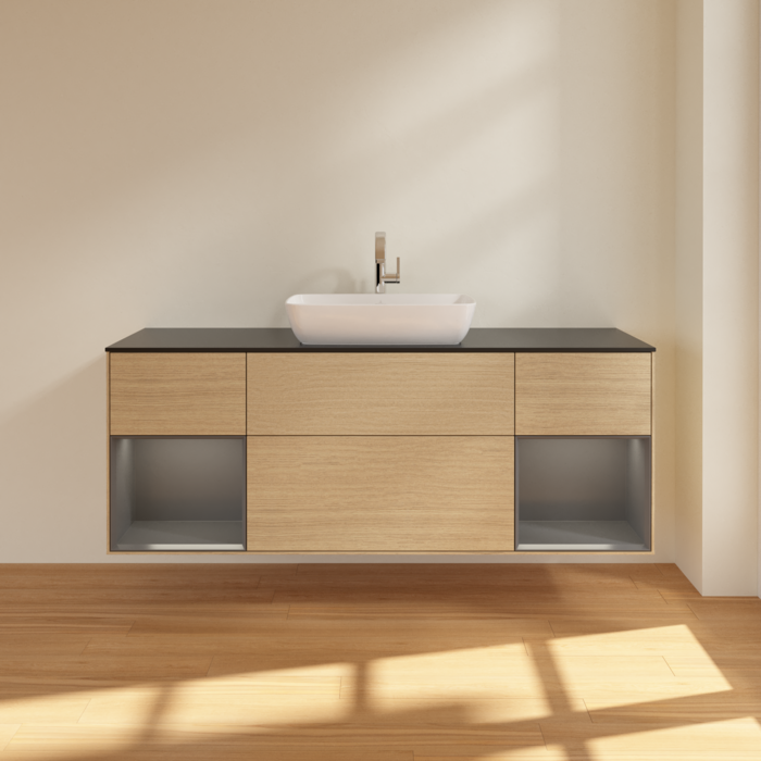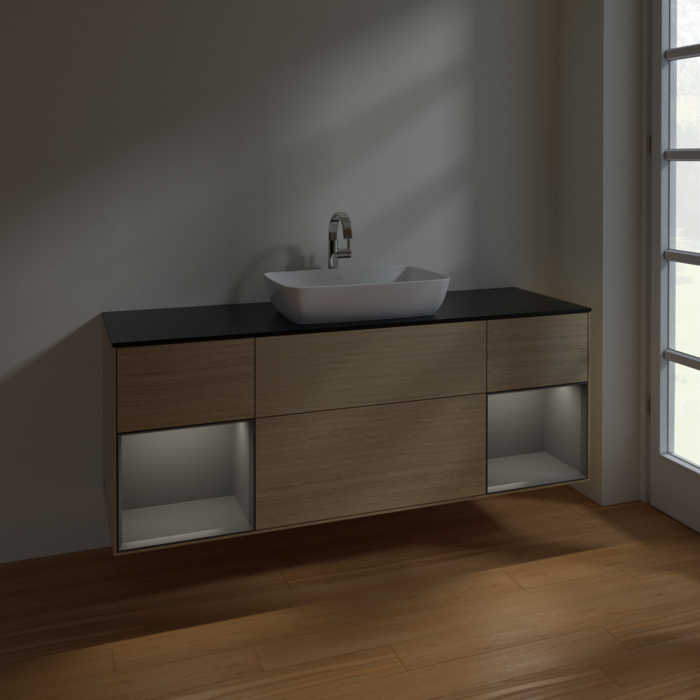 Тумба под раковину Villeroy & Boch Finion 160х50,1 см с подсветкой МДФ шпон дуба/стекло черное матовое F862GKPC