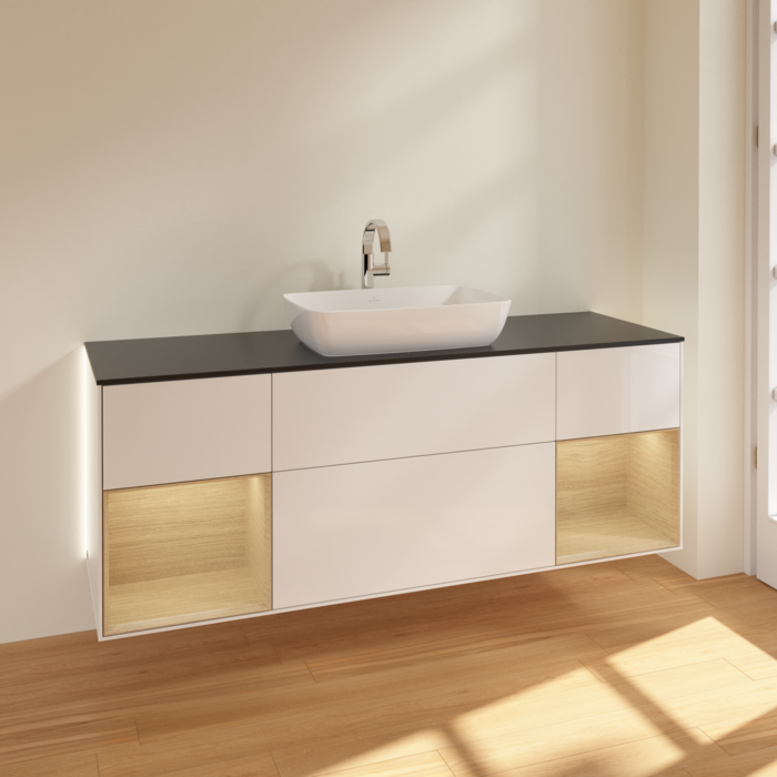 Тумба под раковину Villeroy & Boch Finion 160х50,1 см с подсветкой МДФ глянцевый белый лак/стекло черное матовое G862PCGF