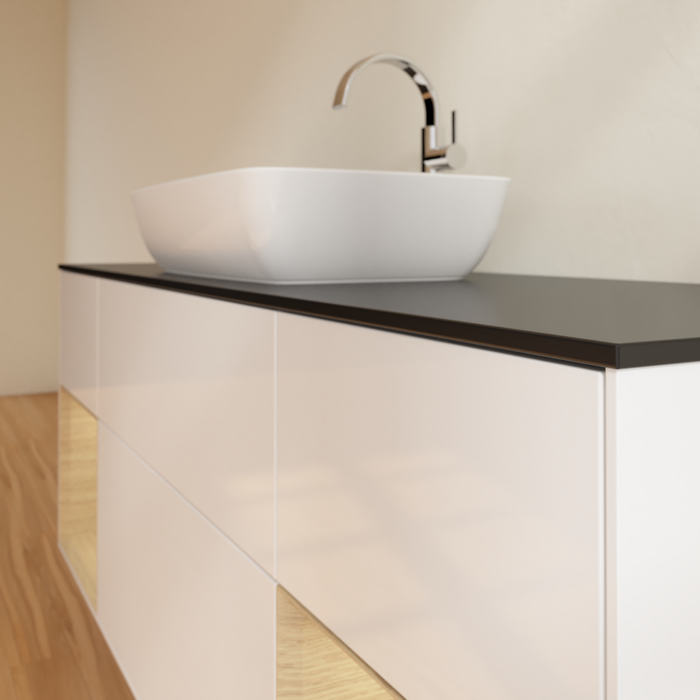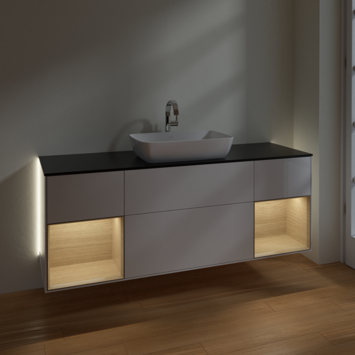 Тумба под раковину Villeroy & Boch Finion 160х50,1 см с подсветкой МДФ глянцевый белый лак/стекло черное матовое
