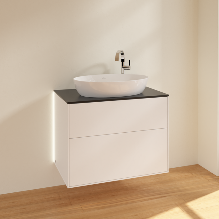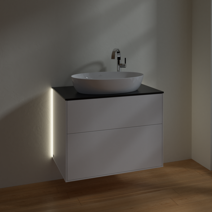 Тумба под раковину Villeroy & Boch Finion 80х50,1 см с подсветкой МДФ белый матовый лак/стекло черное матовое