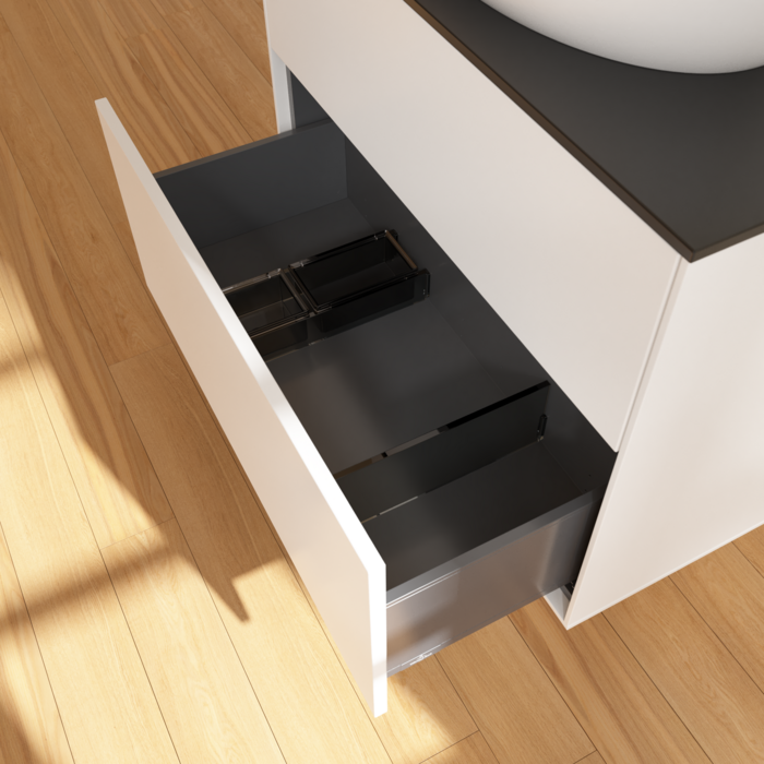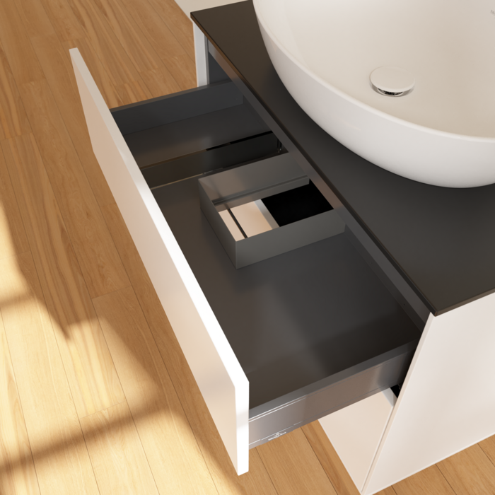 Практичные внутренние перегородки. Продуманные внутренние перегородки в мебели для ванной комнаты Villeroy & Boch позволяют индивидуально поддерживать порядок в ванной комнате. Различные элементы, такие как регулируемые стеклянные перегородки и ящики для аксессуаров различных размеров, обеспечивают порядок и хороший обзор. Благодаря практичным внутренним перегородкам вы сможете с первого взгляда найти часто используемые аксессуары для ванной комнаты.