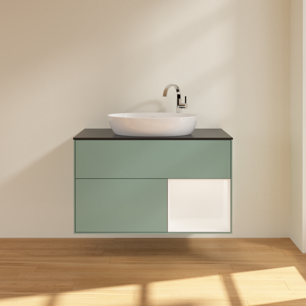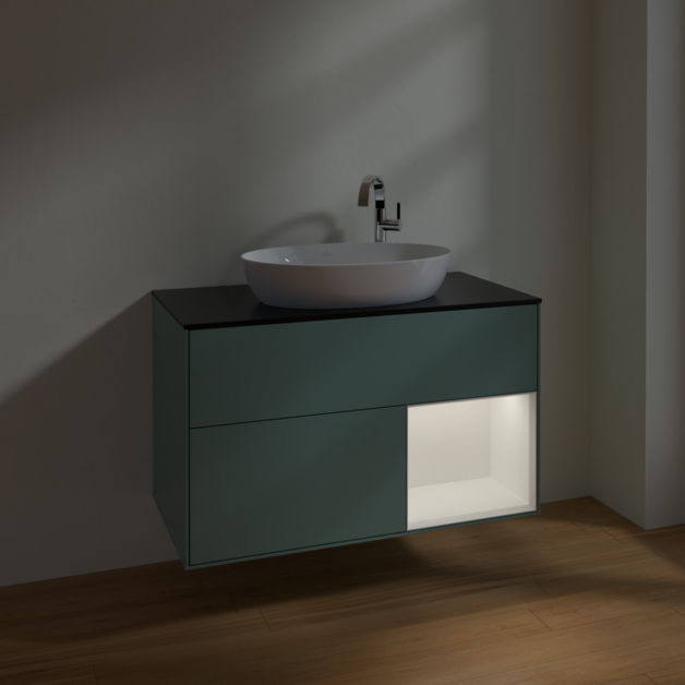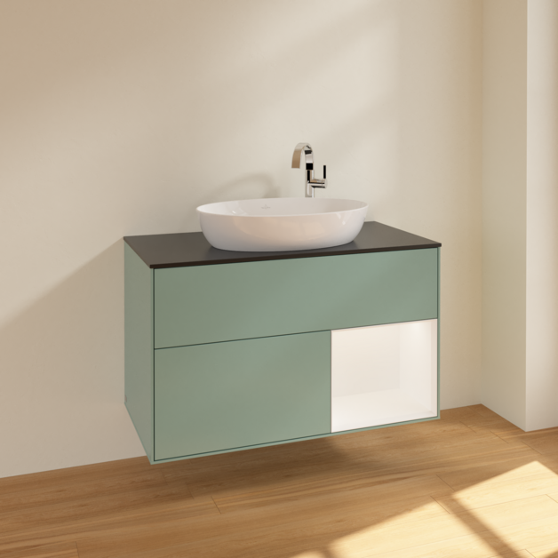 Тумба под раковину Villeroy & Boch Finion 100х50,1 см с подсветкой МДФ оливковый матовый лак/стекло черное матовое F902MTGM