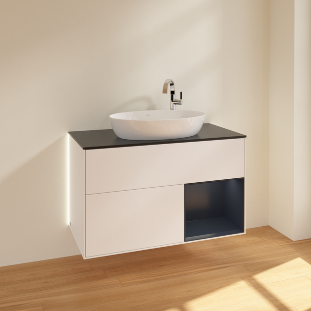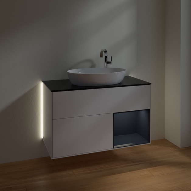 Тумба под раковину Villeroy & Boch Finion 100х50,1 см с подсветкой МДФ белый матовый лак/стекло черное матовое