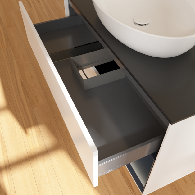 Продуманное внутреннее разделение мебели для ванной Villeroy & Boch позволяет создать индивидуальную систему организации пространства в ванной комнате. Элементы, расположение которых можно менять, например регулируемые стеклянные перегородки и контейнеры для аксессуаров различных размеров, обеспечивают хороший обзор и порядок. Благодаря практичной системе внутреннего разделения вы будете быстро находить принадлежности для ванной, которыми вы постоянно пользуетесь.
