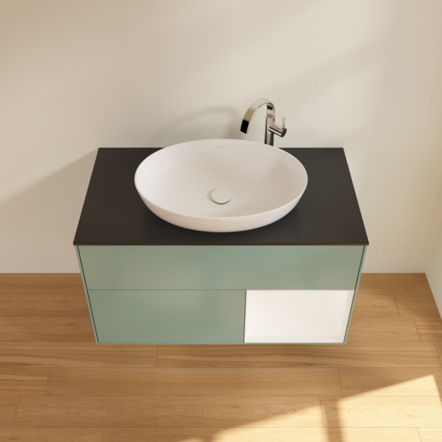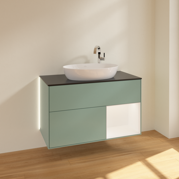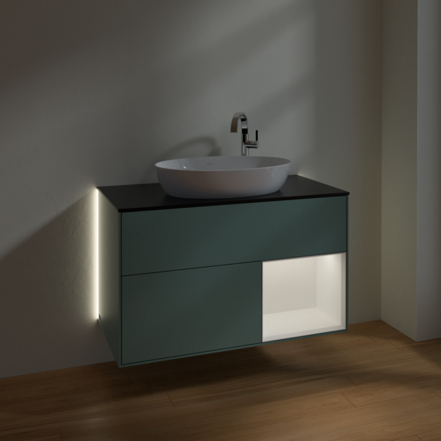Тумба под раковину Villeroy & Boch Finion 100х50,1 см с подсветкой МДФ оливковый матовый лак/стекло черное матовое G902MTGM