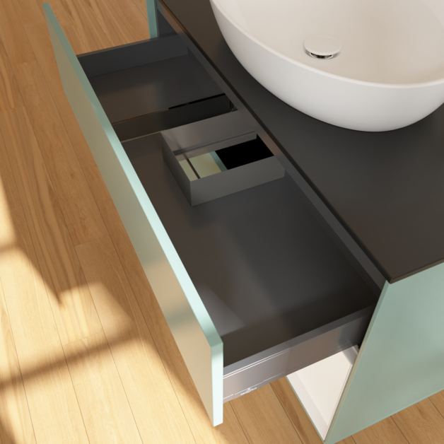 Продуманное внутреннее разделение мебели для ванной Villeroy & Boch позволяет создать индивидуальную систему организации пространства в ванной комнате. Элементы, расположение которых можно менять, например регулируемые стеклянные перегородки и контейнеры для аксессуаров различных размеров, обеспечивают хороший обзор и порядок. Благодаря практичной системе внутреннего разделения вы будете быстро находить принадлежности для ванной, которыми вы постоянно пользуетесь.