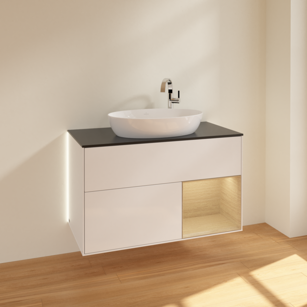 Тумба под раковину Villeroy & Boch Finion 100х50,1 см с подсветкой МДФ глянцевый белый лак/стекло черное матовое G902PCGF