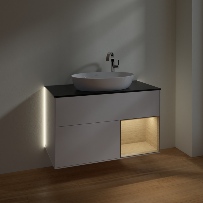 Тумба под раковину Villeroy & Boch Finion 100х50,1 см с подсветкой МДФ глянцевый белый лак/стекло черное матовое