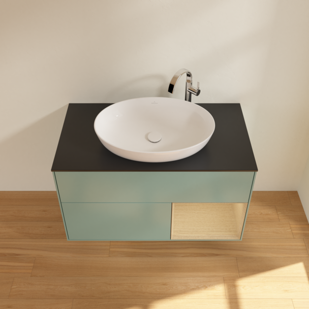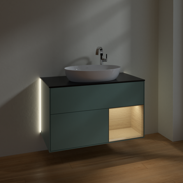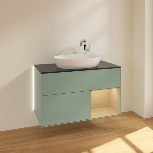 Тумба под раковину Villeroy & Boch Finion 100х50,1 см с подсветкой МДФ оливковый матовый лак/стекло черное матовое G902PCGM