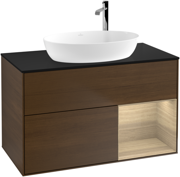 Тумба под раковину Villeroy & Boch Finion 100х50,1 см с подсветкой МДФ шпон грецкого ореха/стекло черное матовое G902PCGN