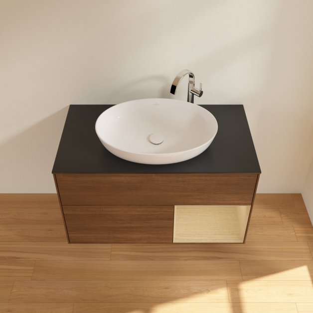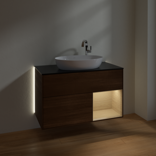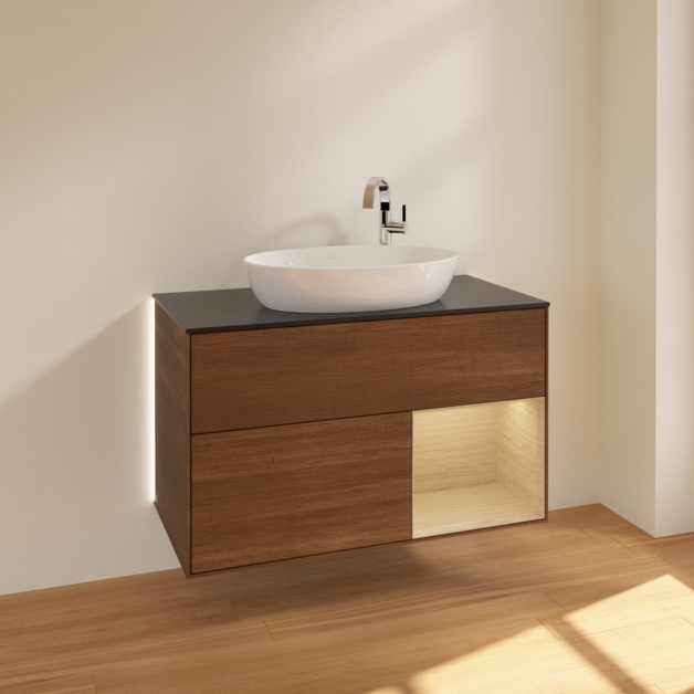 Тумба под раковину Villeroy & Boch Finion 100х50,1 см с подсветкой МДФ шпон грецкого ореха/стекло черное матовое