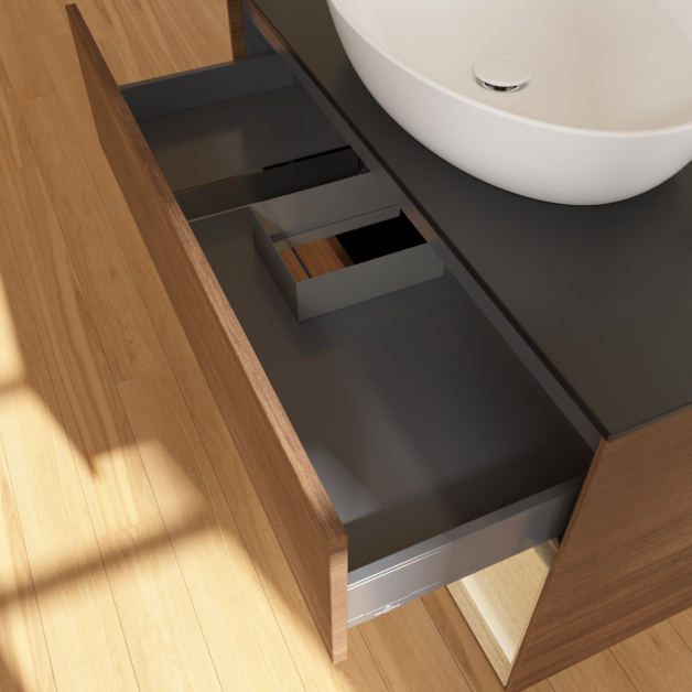 Продуманное внутреннее разделение мебели для ванной Villeroy & Boch позволяет создать индивидуальную систему организации пространства в ванной комнате. Элементы, расположение которых можно менять, например регулируемые стеклянные перегородки и контейнеры для аксессуаров различных размеров, обеспечивают хороший обзор и порядок. Благодаря практичной системе внутреннего разделения вы будете быстро находить принадлежности для ванной, которыми вы постоянно пользуетесь.