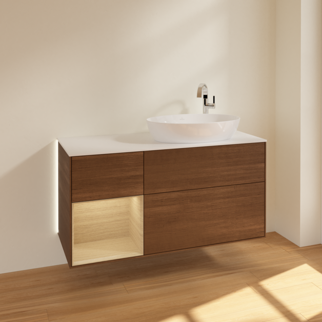 Тумба под раковину Villeroy & Boch Finion 120х50,1 см с подсветкой МДФ шпон грецкого ореха/стекло белое матовое G921PCGN