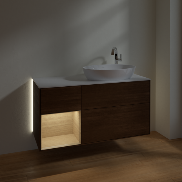 Тумба под раковину Villeroy & Boch Finion 120х50,1 см с подсветкой МДФ шпон грецкого ореха/стекло белое матовое