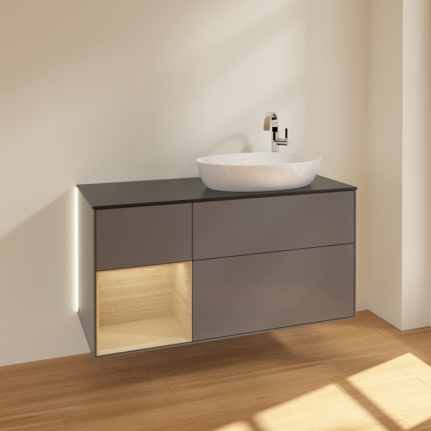 Тумба под раковину Villeroy & Boch Finion 120х50,1 см с подсветкой МДФ антрацит матовый лак/стекло черное матовое G922PCGK