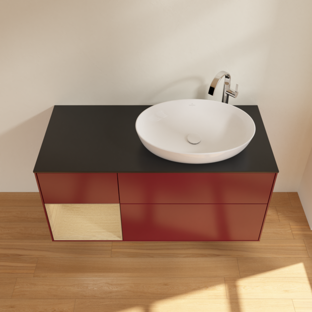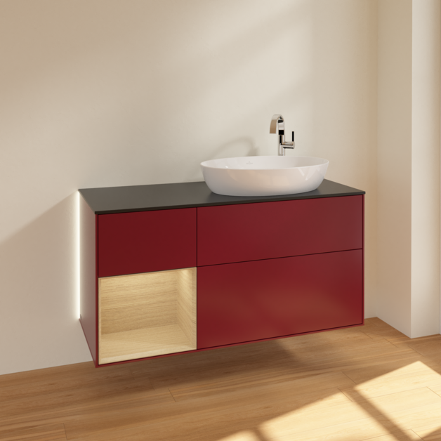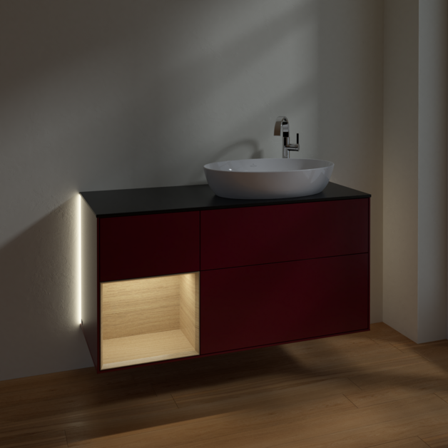 Тумба под раковину Villeroy & Boch Finion 120х50,1 см с подсветкой МДФ пион матовый лак/стекло черное матовое G922PCHB