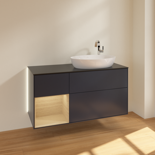 Тумба под раковину Villeroy & Boch Finion 120х50,1 см с подсветкой МДФ темно-синий матовый лак/стекло черное матовое G922PCHG
