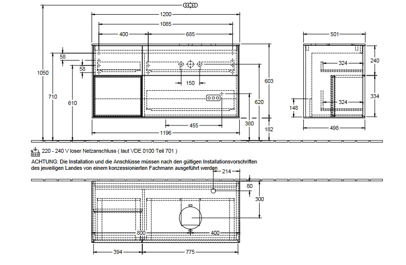 с подсветкой полки и настенным освещением, ящики с функцией SoftClosing, с функцией Push-to-open, с отверстием под смеситель