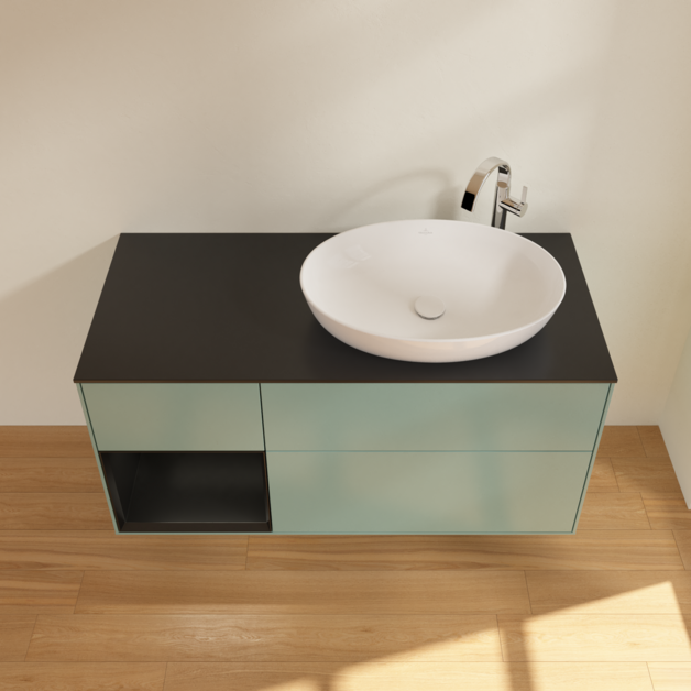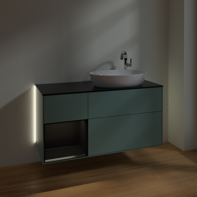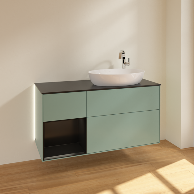 Тумба под раковину Villeroy & Boch Finion 120х50,1 см с подсветкой МДФ оливковый матовый лак/стекло черное матовое G922PDGM