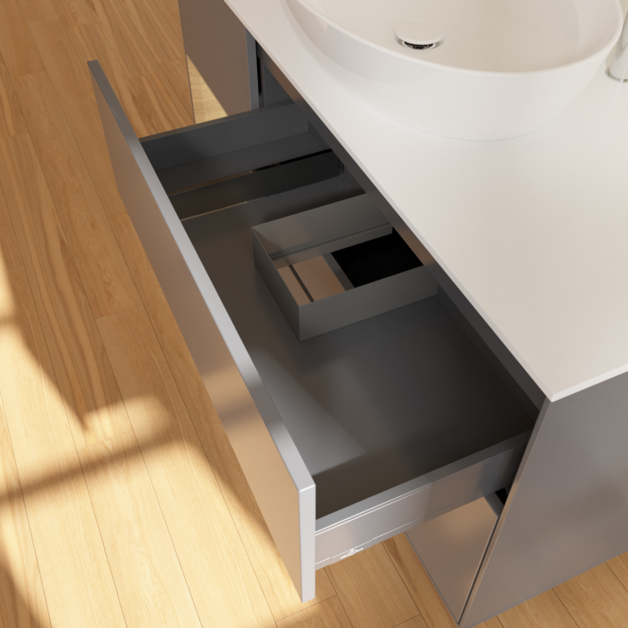 Продуманное внутреннее разделение мебели для ванной Villeroy & Boch позволяет создать индивидуальную систему организации пространства в ванной комнате. Элементы, расположение которых можно менять, например регулируемые стеклянные перегородки и контейнеры для аксессуаров различных размеров, обеспечивают хороший обзор и порядок. Благодаря практичной системе внутреннего разделения вы будете быстро находить принадлежности для ванной, которыми вы постоянно пользуетесь.