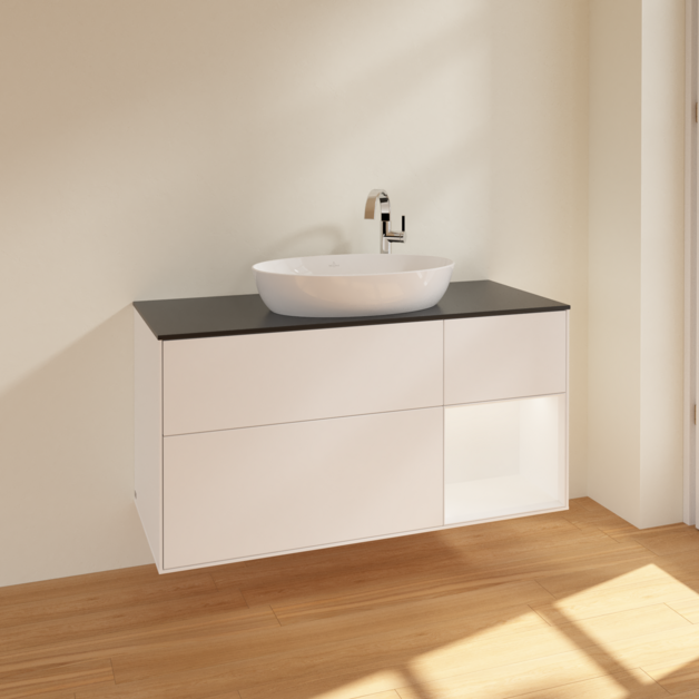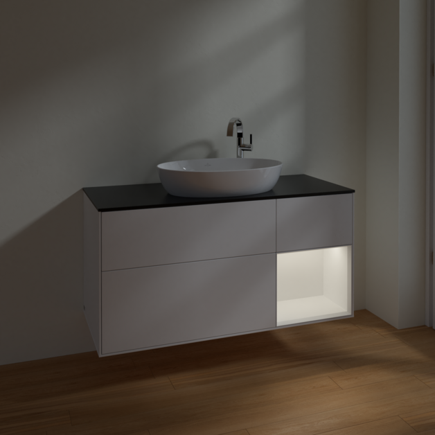 Тумба под раковину Villeroy & Boch Finion 120х50,1 см с подсветкой МДФ белый матовый лак/стекло черное матовое F952MTMT