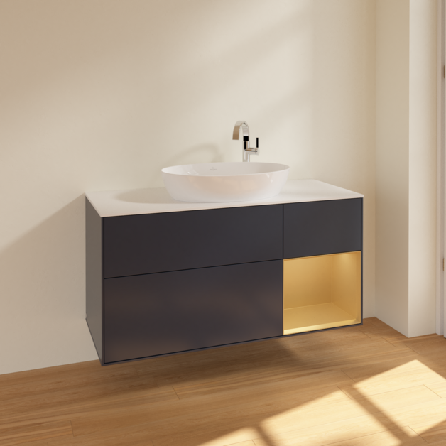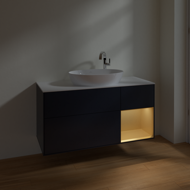 Тумба под раковину Villeroy & Boch Finion 120х50,1 см с подсветкой МДФ темно-синий матовый лак/стекло белое матовое F951HFHG