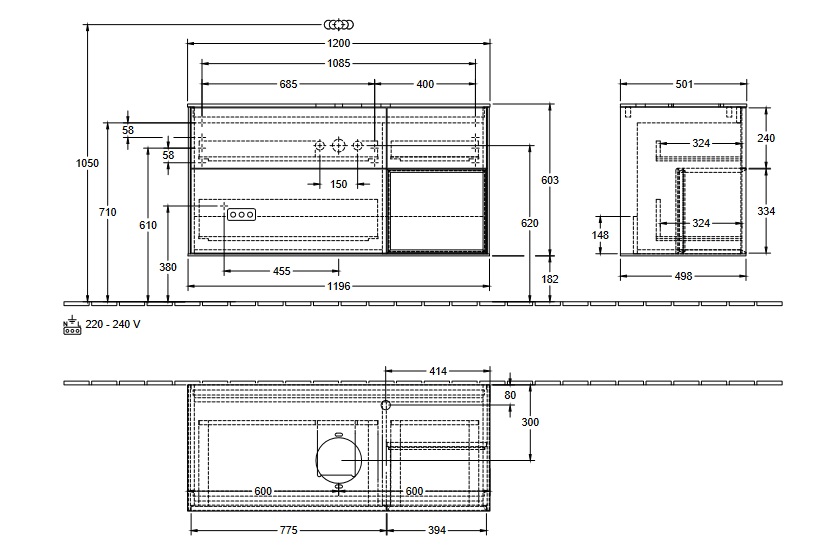 с подсветкой полки, ящики с функцией SoftClosing, с функцией Push-to-open, с отверстием под смеситель