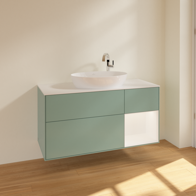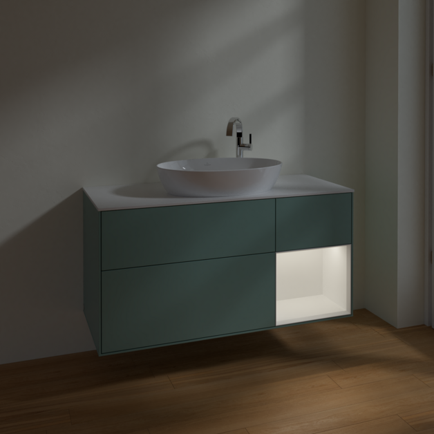 Тумба под раковину Villeroy & Boch Finion 120х50,1 см с подсветкой МДФ оливковый матовый лак/стекло белое матовое F951MTGM
