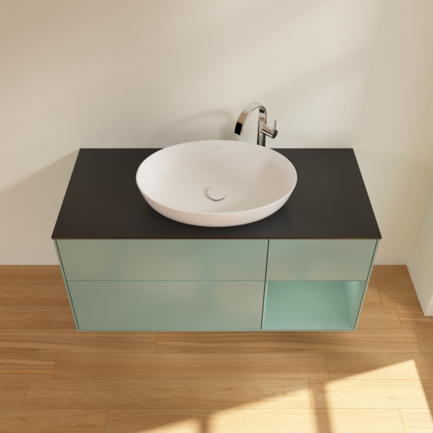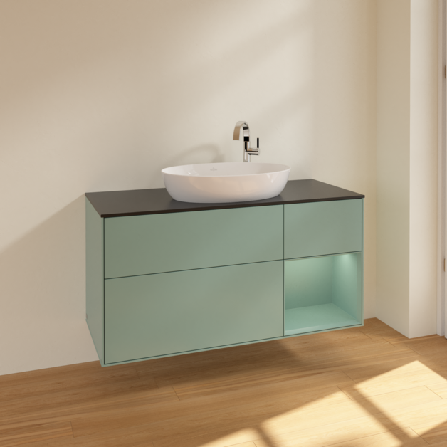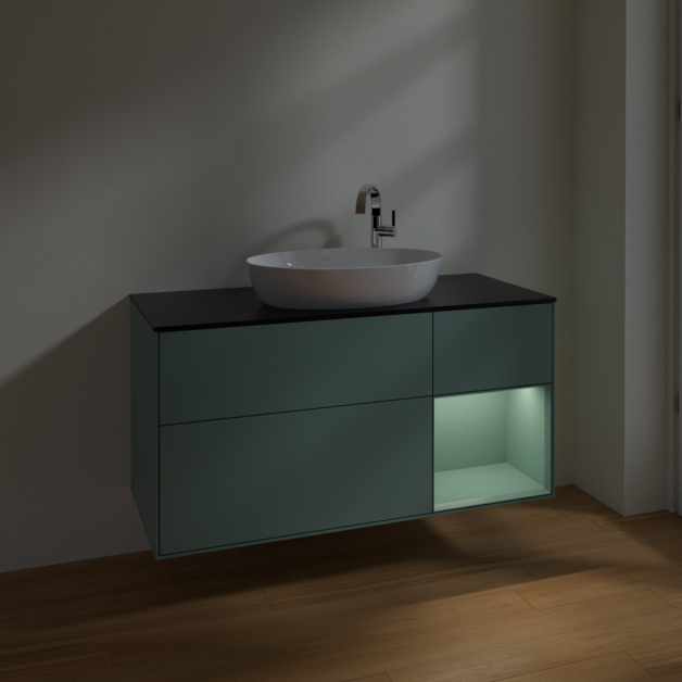 Тумба под раковину Villeroy & Boch Finion 120х50,1 см с подсветкой МДФ оливковый матовый лак/стекло черное матовое F952GMGM