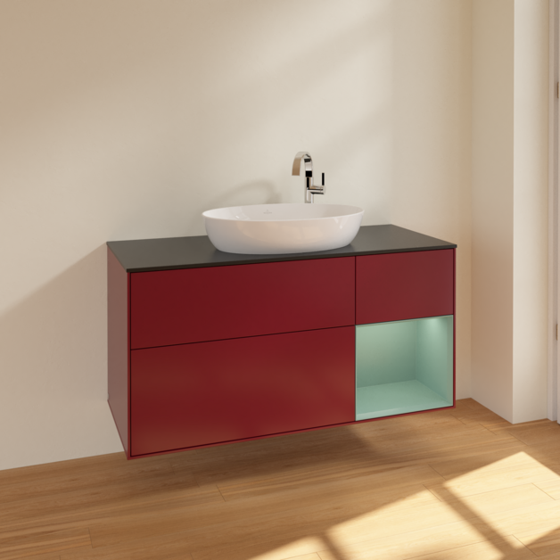 Тумба под раковину Villeroy & Boch Finion 120х50,1 см с подсветкой МДФ пион матовый лак/стекло черное матовое F952GMHB