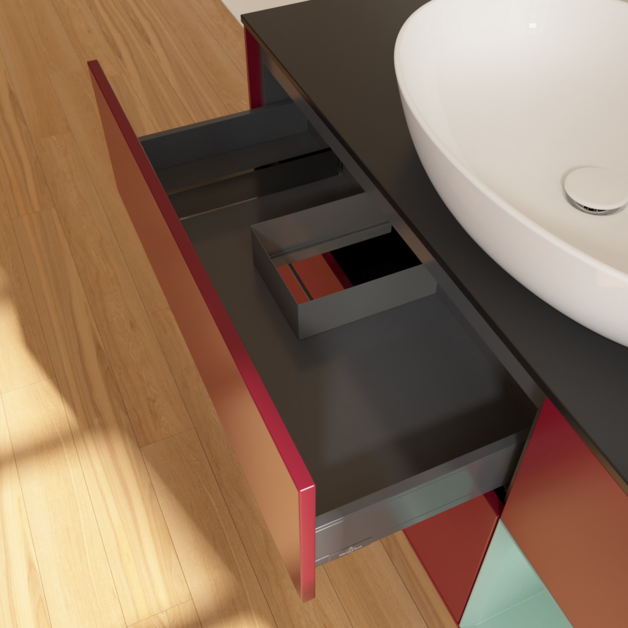 Полное выдвижение. Благодаря функции полного выдвижения выдвижные ящики можно полностью выдвигать. Все их содержимое хорошо видно и его удобно доставать. Больше не нужно копаться в дальних отсеках выдвижного ящика — благодаря мебели для ванной с полным выдвижением вы получаете полный обзор.