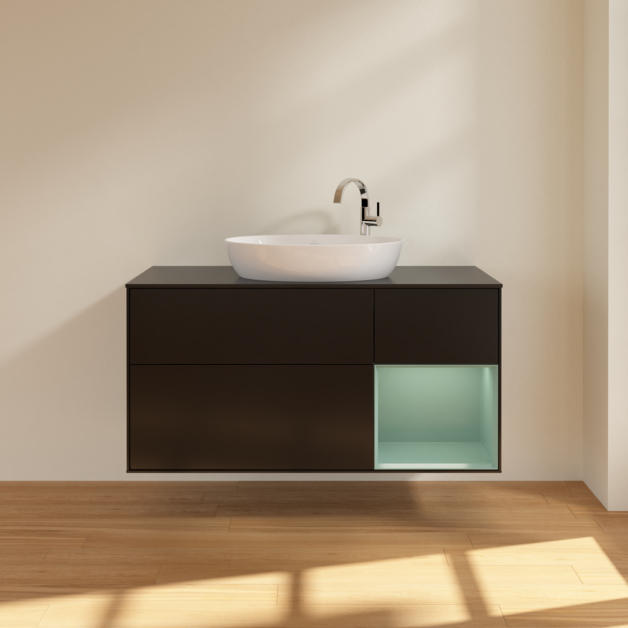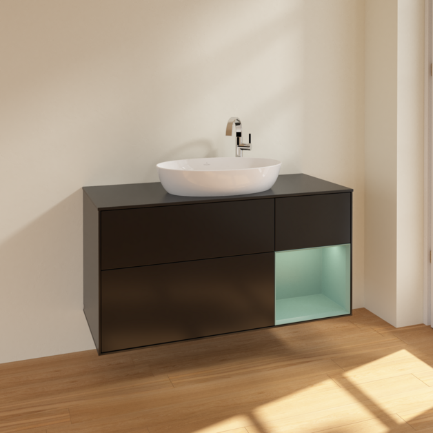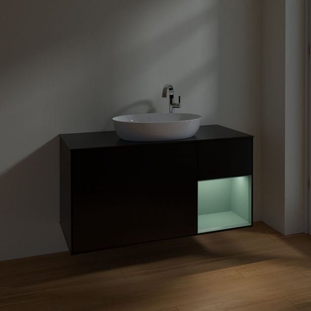 Тумба под раковину Villeroy & Boch Finion 120х50,1 см с подсветкой МДФ черный матовый лак/стекло черное матовое F952GMPD
