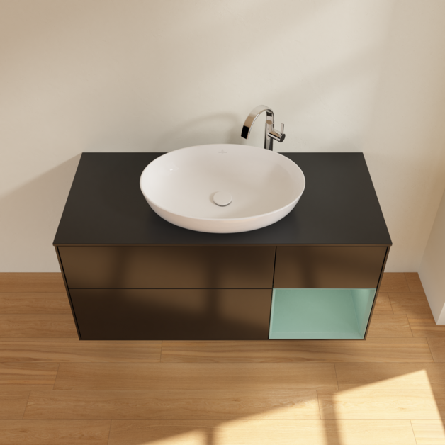 Выразительный дизайн и изысканная техника — коллекция мебели для ванных комнат Villeroy & Boch Finion идеальна во всем. Единая система подсветки мебели создает определенную атмосферу в вашей ванной, а модульные полки и шкафы различных цветов обеспечивают ее индивидуальность. Мебель для ванной из коллекции Villeroy & Boch Finion со стенками толщиной всего 8 мм подчеркивает лаконичность дизайна.